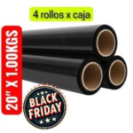 El precio original era: S/14.00.S/12.00El precio actual es: S/12.00.STRECH FILM COLOR NEGRO PARA EMBALAR, 20″ x 1,000KGS, PRECIO POR CAJON DE 4 UNIDADES